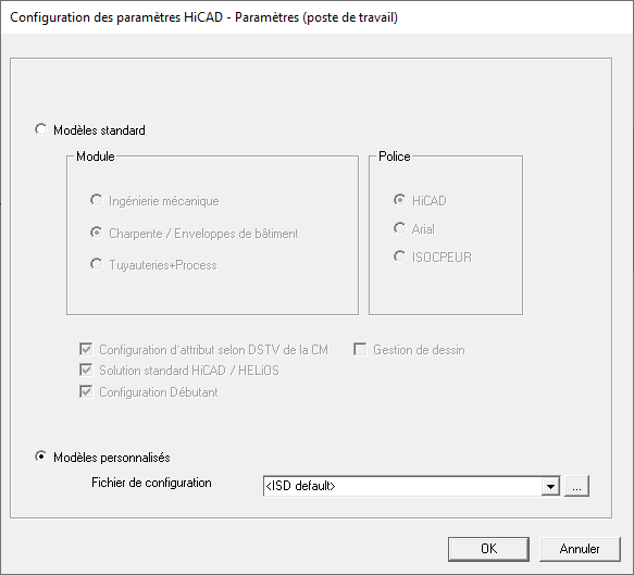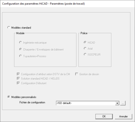 Si vous souhaitez utiliser votre propre modèle de configuration pour une version HiCAD déjà installée, utilisez alors le programme