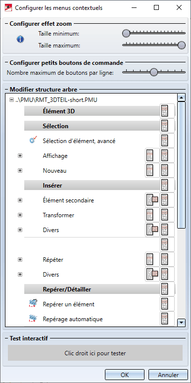 En quittant la fenêtre de dialogue par OK, les paramètres choisis seront appliqués au menu contextuel.