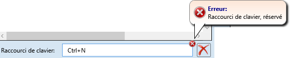Si une combinaison de touches est déjà attribuée à cette fonction, elle sera alors indiquée dans le champ Raccourci de clavier.