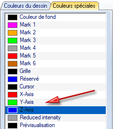 . Vous y trouvez dans l'onglet Couleurs spéciales les paramètres pour les axes :