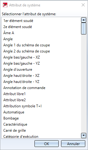 Là aussi vous pouvez cocher plusieurs cases et des ensembles entiers, par exemple tous les éléments de la Charpente métallique. Une fois le type d'élément sélectionné (cliquez simplement en dehors de la boîte de sélection), ces sélections seront reprises dans la boîte de dialogue.