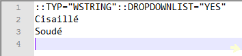 - Dans le fichier système H_BHW.TXT (situé dans le répertoire sys de HiCAD), les notes d'usinage possibles doivent être ajoutées, par exemple :