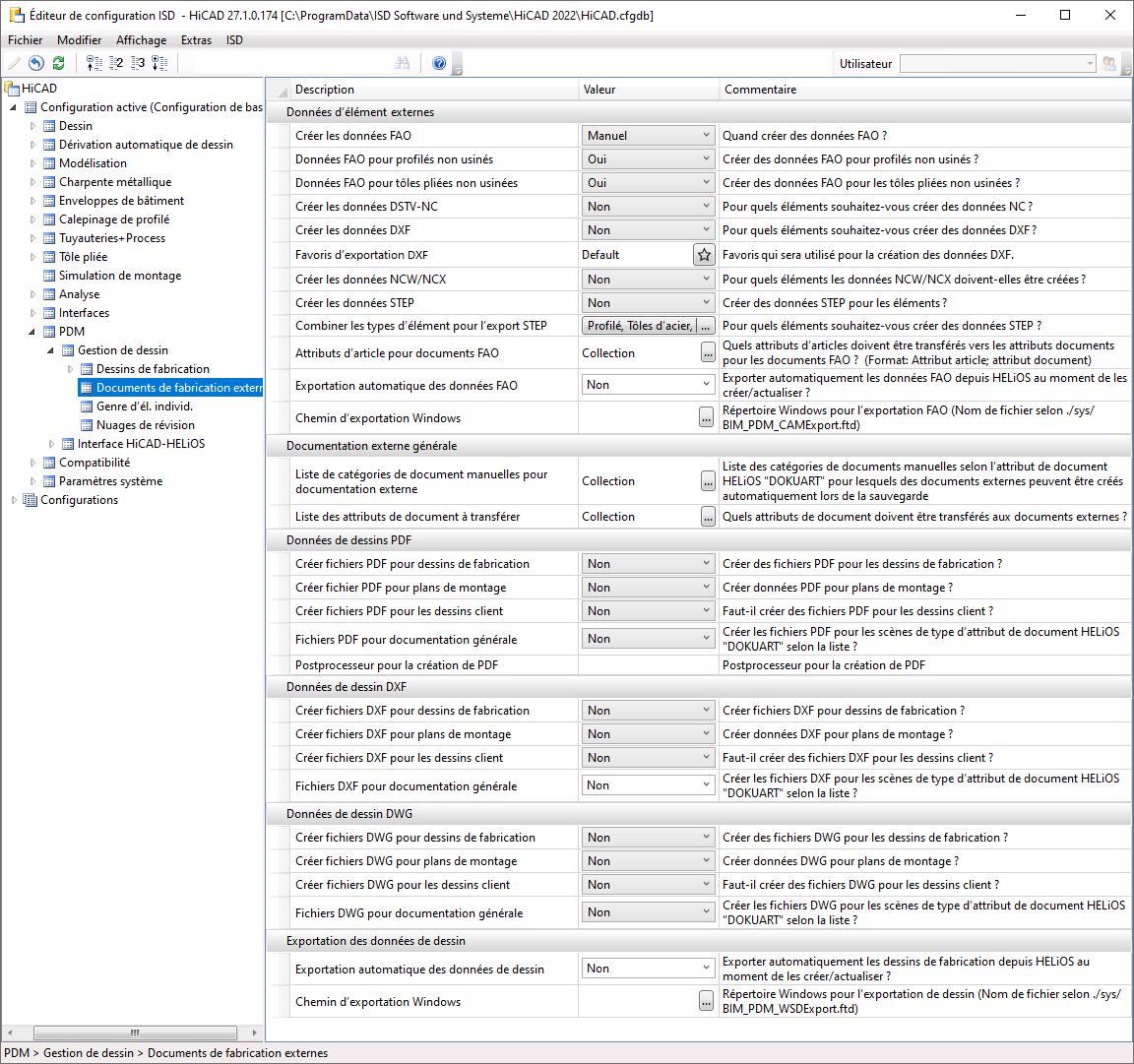 Les fichiers seront nommés automatiquement selon le fichier de configuration de l'exportation BIM_PDM_WSDExport.ftd (situé dans le répertoire sys de HiCAD). Par défaut, ISD a prédéfini :