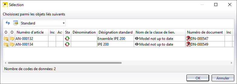 Ces liens permettent de vérifier s'il existe des dessins avec d'anciennes étapes de construction référencées et s'il est nécessaire de les mettre à jour. Cette fonction n'est disponible que si, dans le Gestionnaire de Configuration sous PDM > Gestion de dessin, le paramètre Actualiser les éléments référencés a été réglé sur Oui.