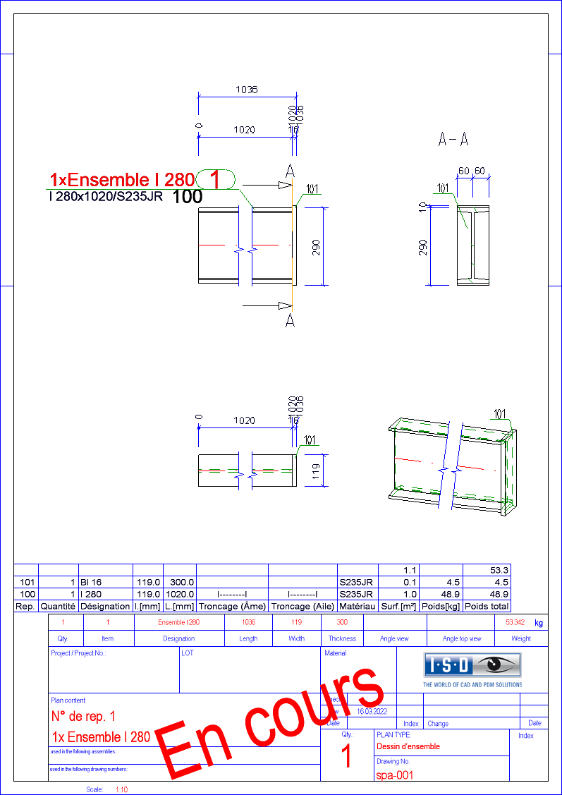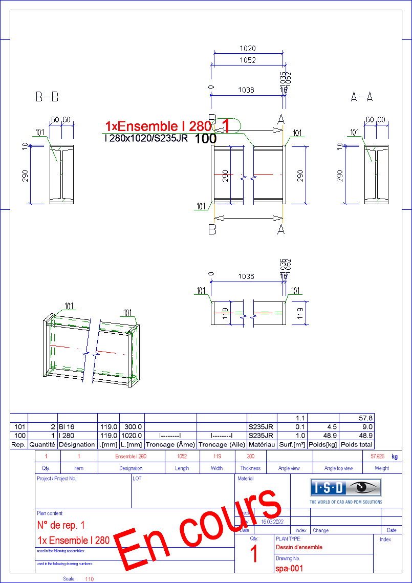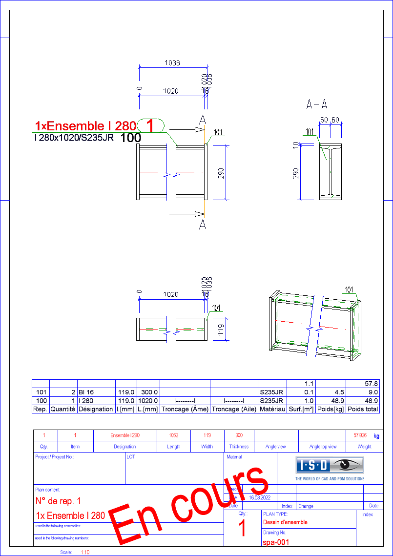 Gestion de dessin > Atelier > Dessin > Uniquement nomenclature et cartouche