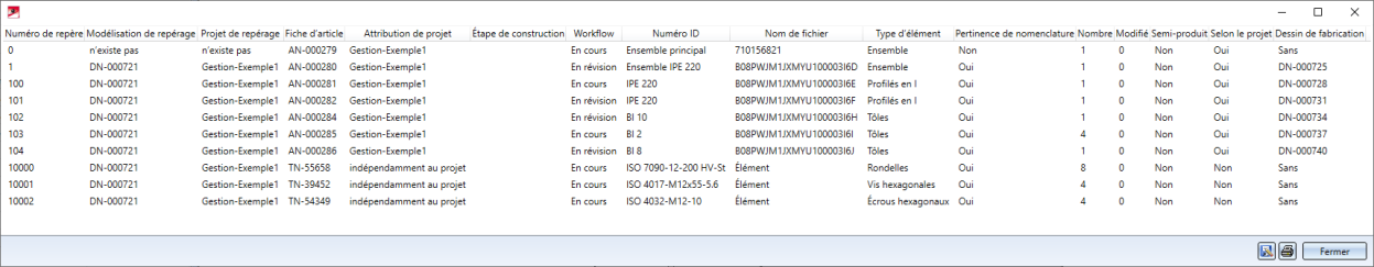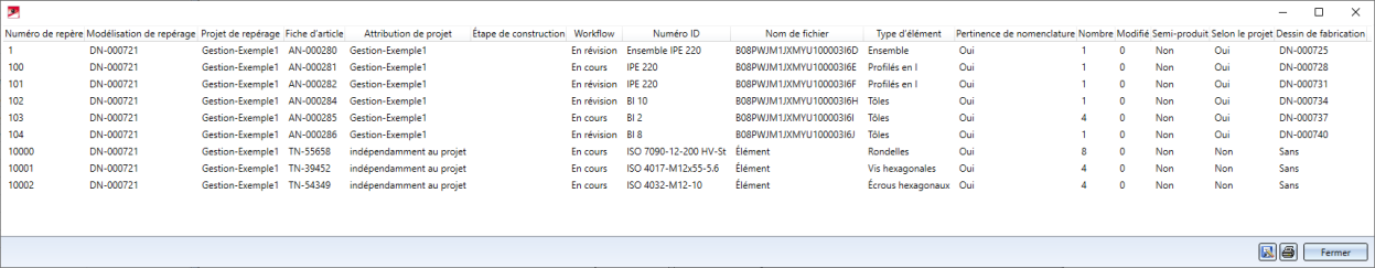 Informations, Éléments non dépendants au projet Liste des éléments qui n'appartiennent pas au projet actif. |