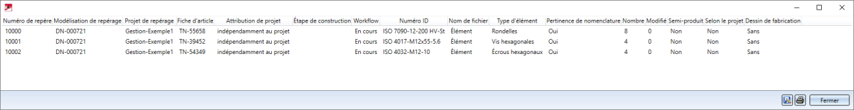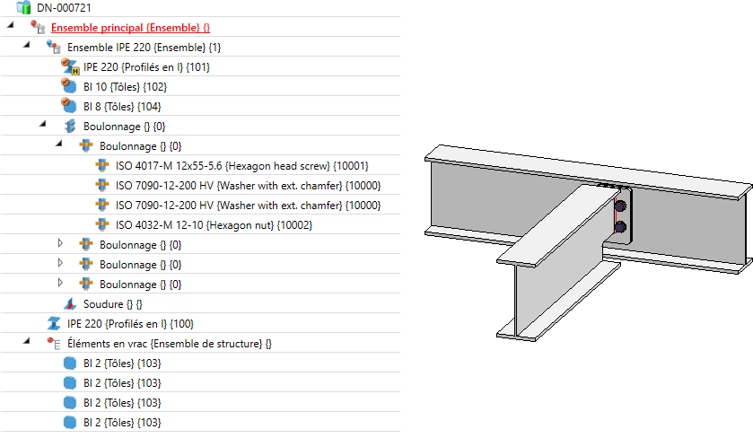 Correction, Éléments pertinents pour nomenclature non valides Cette fonction recherche sur la scène actuelle les éléments non valides qui sont pertinents pour la nomenclature, c'est-à-dire les éléments qui ne devraient pas être pertinents pour la nomenclature. Si, par exemple, dans l'exemple ci-dessus, l'ensemble Boulonnage était défini comme Pertinent pour nomenclature, il ne serait en principe pas valable. |