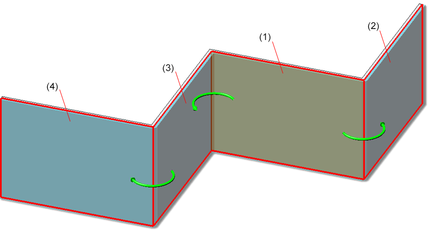 Depuis semi-produit située à côté du champ de saisie du rayon de pliage. Dans l'encart de la fenêtre Arêtes de pliage, vous pouvez, également en ayant choisi un semi-produit, modifier par la suite le rayon de pliage individuellement.