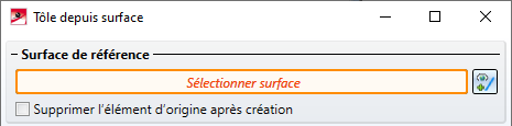 La fonction Nouvelle tôle depuis surface vous permet de construire de nouveaux éléments de tôle à partir des surfaces d'un élément 3D en assignant une épaisseur de tôle. Après avoir sélectionné la fonction, le menu de saisie apparaît.