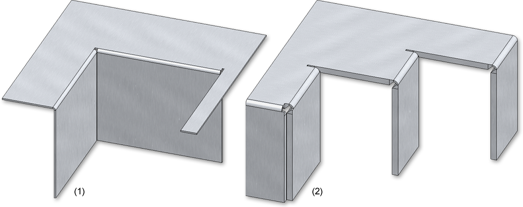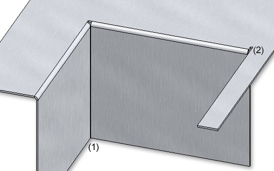Pour les tôles/rabats créés, seule la surface de l'élément 3D sera utilisée. Si l'élément 3D possède par ex. des cavités, seul le diamètre extérieur (le plus grand) sera inclus dans la tôle à créer. De la même manière, seule la surface la plus extérieure sera reprise dans la nouvelle tôle pour les parties découpées ou les parties ajoutées.