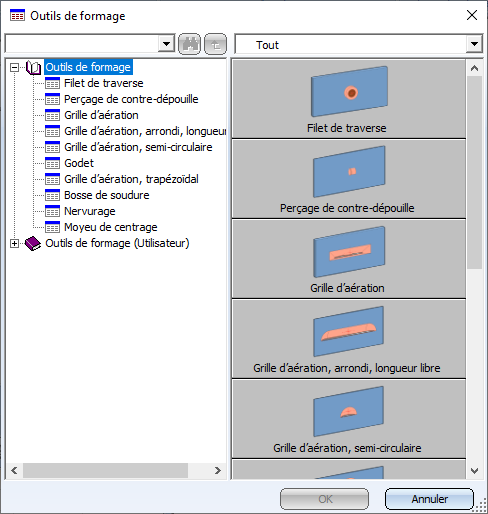 Une fenêtre de sélection s'ouvre vous permettant de choisir un outil de formage issu du catalogue.