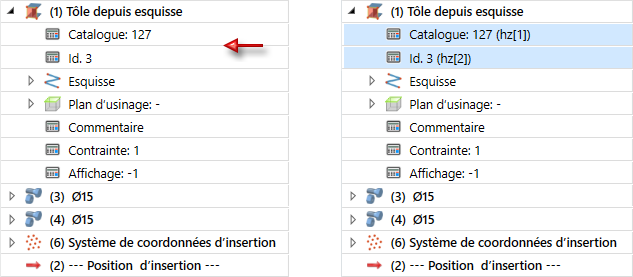 Dans le Feature de la tôle, saisissez ensuite sous Catalogue et Id. les variables hz[1] et hz[2].