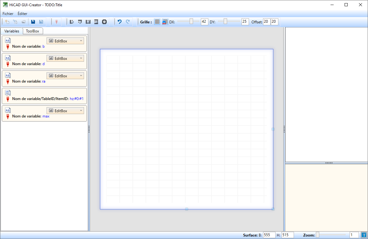Nous déposons les variables d, max, et ra comme EditBox dans l'ImageGroup, par exemple :