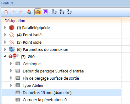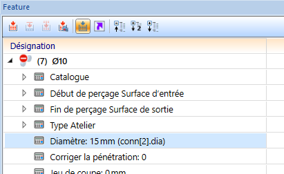 Après avoir modifié le diamètre dans les Propriétés du Calepinage d'élément, il suffira de recalculer dans le Feature l'ensemble pour une actualisation de tous les perçages.