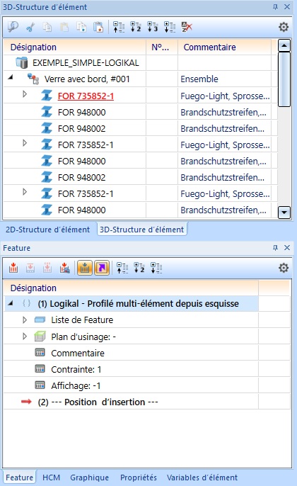 Dans l'historique de Feature, l'esquisse obtient une entrée sous LogiKal avec comme sous-entrée Esquisse.