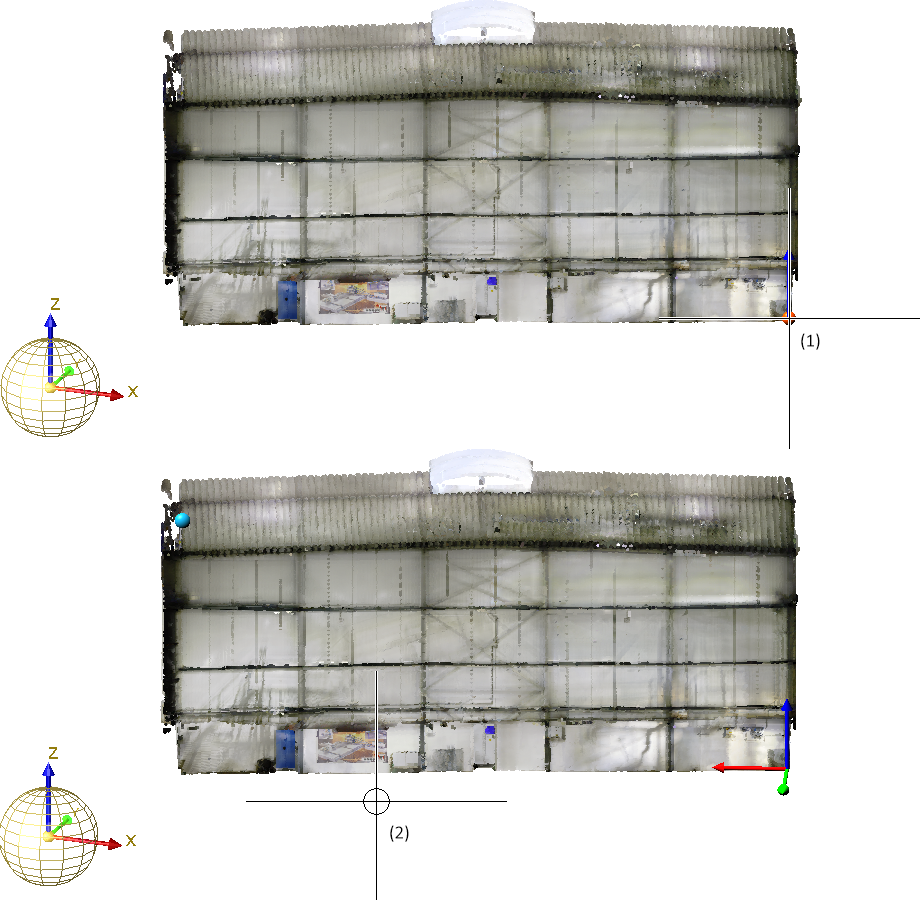 Lors de la définition des points requis pour l’alignement du nuage de points, l’option de point (PW) Point de nuage de points n’est pas automatiquement activée. Dans certains cas, il peut donc s’avérer judicieux de définir des points isolés avant alignement afin de mieux pouvoir définir l’origine et la direction de l’axe X du nuage de points par la suite. Les points isolés peuvent également être des points du nuage de points.