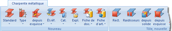 Les fonctions spécifiques à la Charpente métallique sont regroupées dans l'onglet Charpente métallique.