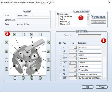 Les options vous permettant de modifier l'attribution des variables aux groupes de variables, ou de déplacer, renommer, supprimer ou créer de nouveaux groupes de variables sont décrites dans la rubrique Convertir une variante en une variante de base.