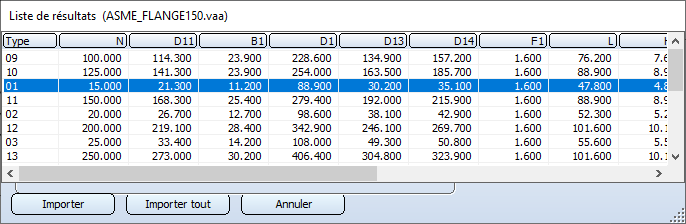 Les codes de données des lignes précédemment sélectionnées dans la liste de résultats sont reconnus comme "sélectionnés pour l'importation", et l'importation des données est exécutée. |