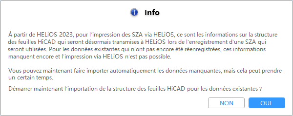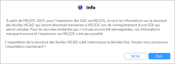 Lorsque HiCAD est démarré avec HELiOS après l'installation de la mise à jour, vous recevez un message concernant la mise à jour des données de la structure des feuilles.