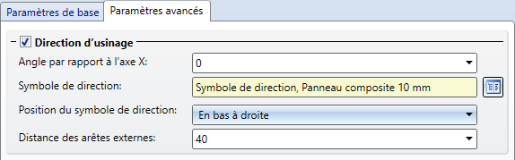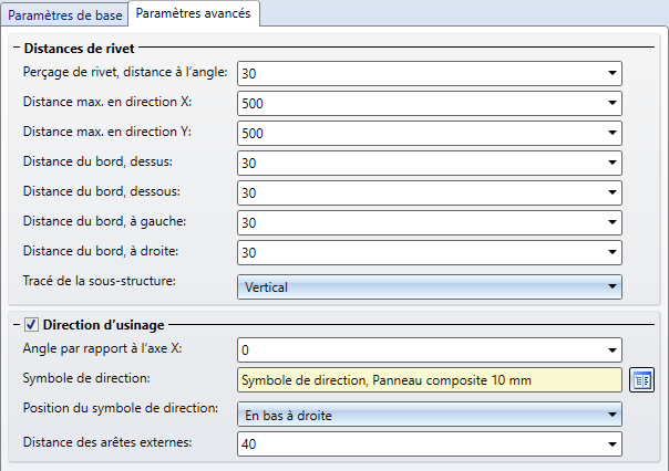 Fenêtre de dialogue ALUCOBOND riveté - Paramètres avancés