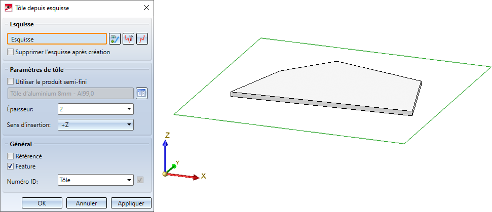 Veuillez vous assurer que c'est bien l'élément principal de tôle qui est actif.