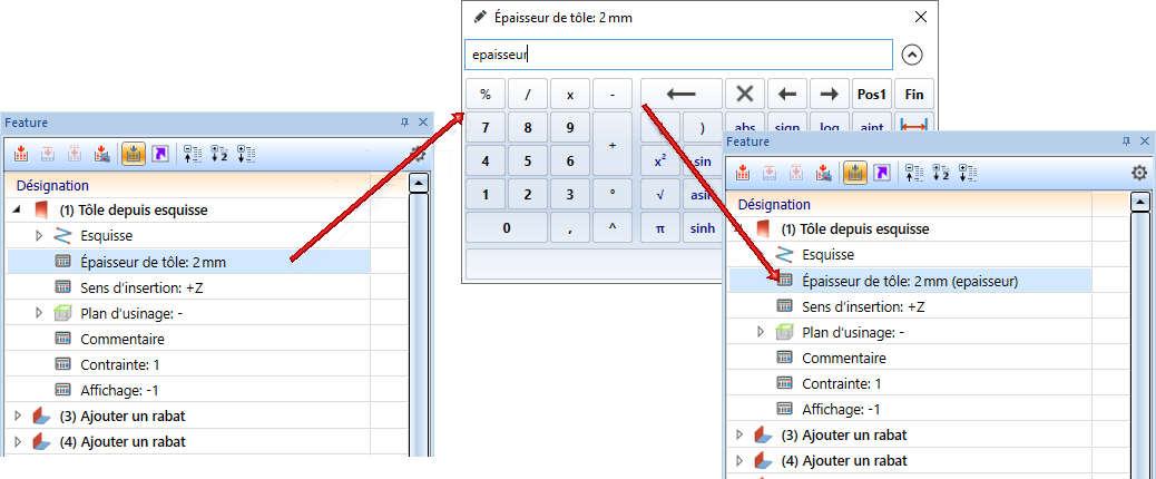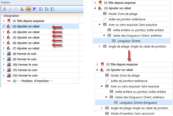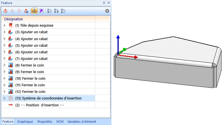 Le système de coordonnées d'insertion est intégré dans l'historique de Feature.