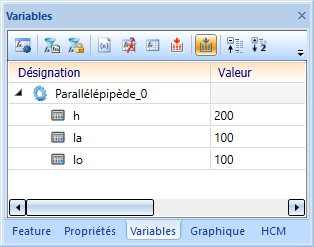 Créez les Variables Nombre lo, la et h pour la longueur, la largeur et la hauteur d'un parallélépipède.