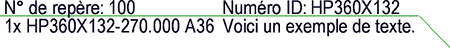 Vous pouvez attribuer à chaque bloc de texte d'une annotation les propriétés Type/Codage de la police, Taille des caractères, Interligne, Couleur de police, Rapport de forme/Angle d'inclinaison (seulement pour les polices HiCAD) ainsi que l'Alignement (à gauche, centré ou à droite).