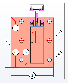 La valeur (1) Espace dans la fenêtre de dialogue définit la distance entre la platine de base et le profilé, quant à (2) Longueur, il s'agit de la longueur du profilé de connexion à partir de la platine de base.