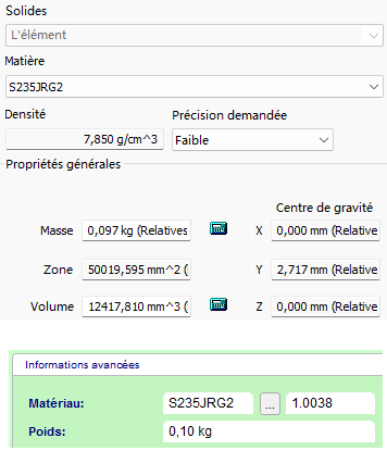 Remarque : La Densité est nécessaire dans Inventor pour calculer le poids.