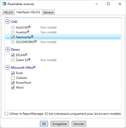 Vous avez la possibilité d'installer le couplage de HELiOS pour Navisworks aussi bien au moment de la première installation de HELiOS qu'ultérieurement.