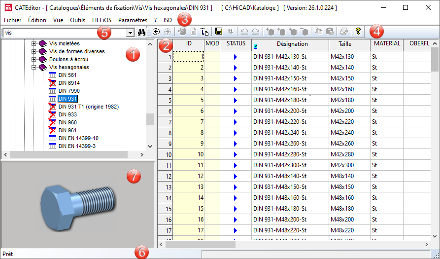 Dans la barre de titre de la fenêtre s'affichent le nom, la version et le répertoire du catalogue.