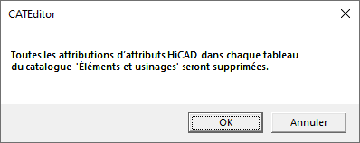 Supprimer toutes les attributions d'attributs HiCAD. Après un clic sur le symbole, une confirmation d'exécution s'affiche.