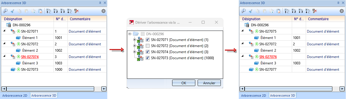 - Les éléments référencés seront enregistrés avec leur nouvelle structure (dans laquelle les éléments dérivés sont contenus).