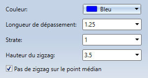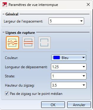 Pour les lignes de rupture en zigzag, la couleur, la strate et le dépassement, ainsi que la hauteur du zigzag peuvent être définis.