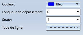 Ce type de ligne de rupture permet de définir la couleur, la strate et le type de ligne, ainsi que la longueur de dépassement (2).