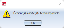 Les éléments qui portent dans l'ICN le symbole , c'est-à-dire les éléments qui viennent d'être modifiés et qui n'ont pas encore été enregistrés, ne peuvent pas être verrouillés. Un message d'erreur apparaît alors.