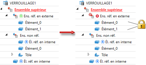 L'Ensemble supérieur se voit muni d'un verrouillage. Ici, seul l'Ens. réf. en externe sera verrouillé, c'est-à-dire ses éléments subordonnés.