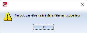 - Les esquisses ne peuvent se voir subordonner un élément secondaire. Si cette action est tentée, le message suivant apparaît alors :