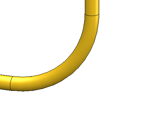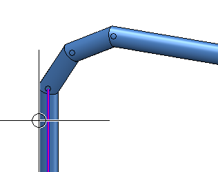 Lors de l'insertion de coudes à segments, HiCAD essaie d'équiper la ligne directrice automatiquement avec des segments. Pour ce faire, les deux arêtes adjacentes sont parcourues à la recherche de tuyaux appropriés. Si des tuyaux identiques sont trouvés sur les deux arêtes, elles sont prolongées d'un tuyau et par un coude à segments de même type que le tuyau et des coupes d'onglet y sont opérées.