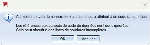 Si vous n'avez pas assigné d'article aux connexions dans les Paramètres pour Isométrie/Schéma de tuyauterie, le message suivant apparaît :