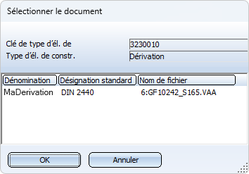 HiCAD affiche dans une fenêtre de dialogue tous les codes de données d'éléments (Type général) qui existent dans la base de données pour ce type d'élément.