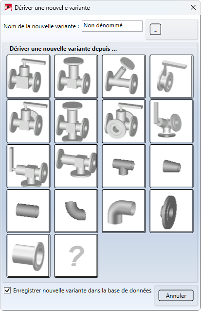 Dériver une nouvelle variante - Sélection d'élément : Base de données