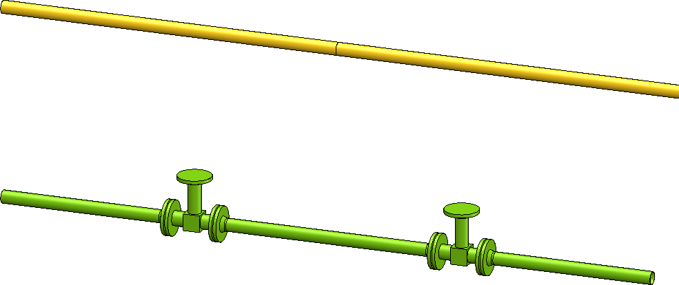 Cette fonction fonctionne de manière similaire à copier les éléments de tuyau. La différence est qu'ici, les tuyaux droits ne sont pas déplacés et que les éléments à transposer doivent former une conduite droite. En outre, après avoir transposé des éléments, HiCAD tente ici de combler l'interstice laissé libre avec des tuyaux droits.