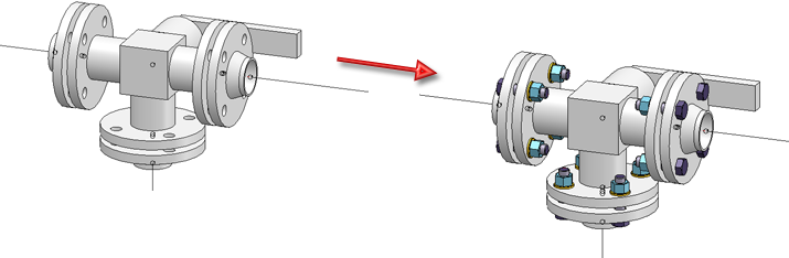 Si les assemblages par brides boulonnées requis ont déjà été enregistrés en tant que fichiers KRA référencés et qu'il n'existe qu'un seul assemblage par brides boulonnées pour chaque point d'insertion, aucune autre entrée ne sera nécessaire et tous les assemblages par brides boulonnées seront insérés automatiquement.