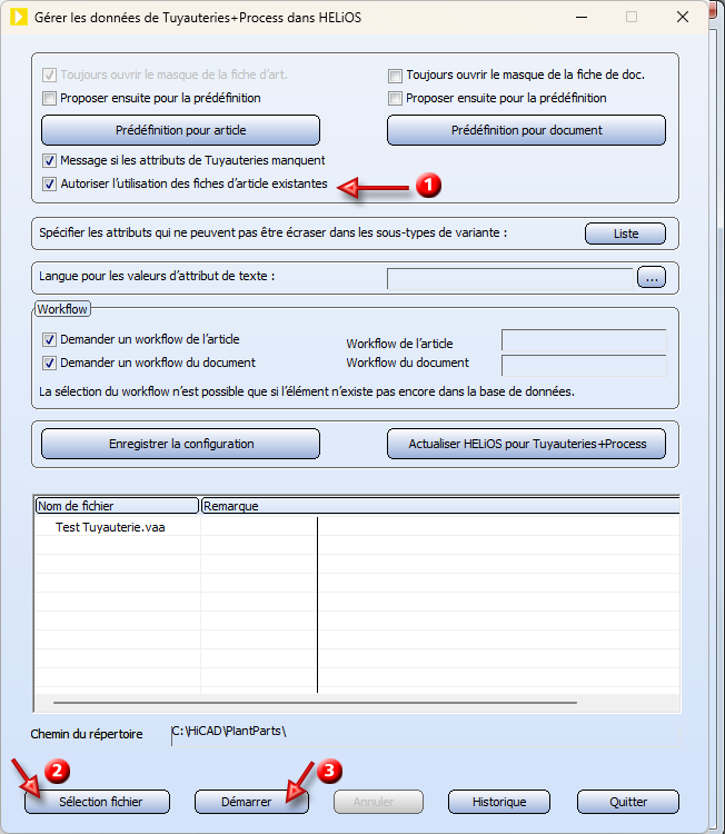Démarrer le programme DbPlantDataImport.exe (Répertoire exe d'HiCAD).