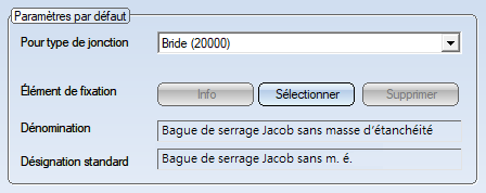 Pour chaque type de jonction que vous sélectionnez dans la liste de choix Pour type de jonction, vous pouvez spécifier ici un élément de fixation. En d'autres termes plus précis : vous indiquez ici la désignation standard d'une fixation comme critère de recherche.