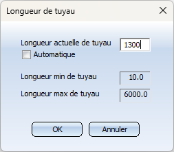 Dans la fenêtre de dialogue Longueur de tuyau, désactivez l'option automatique et indiquez la longueur de votre choix.