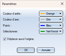Outre les paramètres de couleur pour les arêtes, les axes, les points et les repères, vous pouvez influencer la position de la grille en cochant la case Déplacer aussi l'origine.